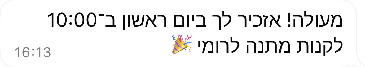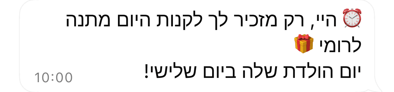 תזכיר לי ביום ראשון ב 10בבוקר לקנות מתנה לרומי ליום הולדת